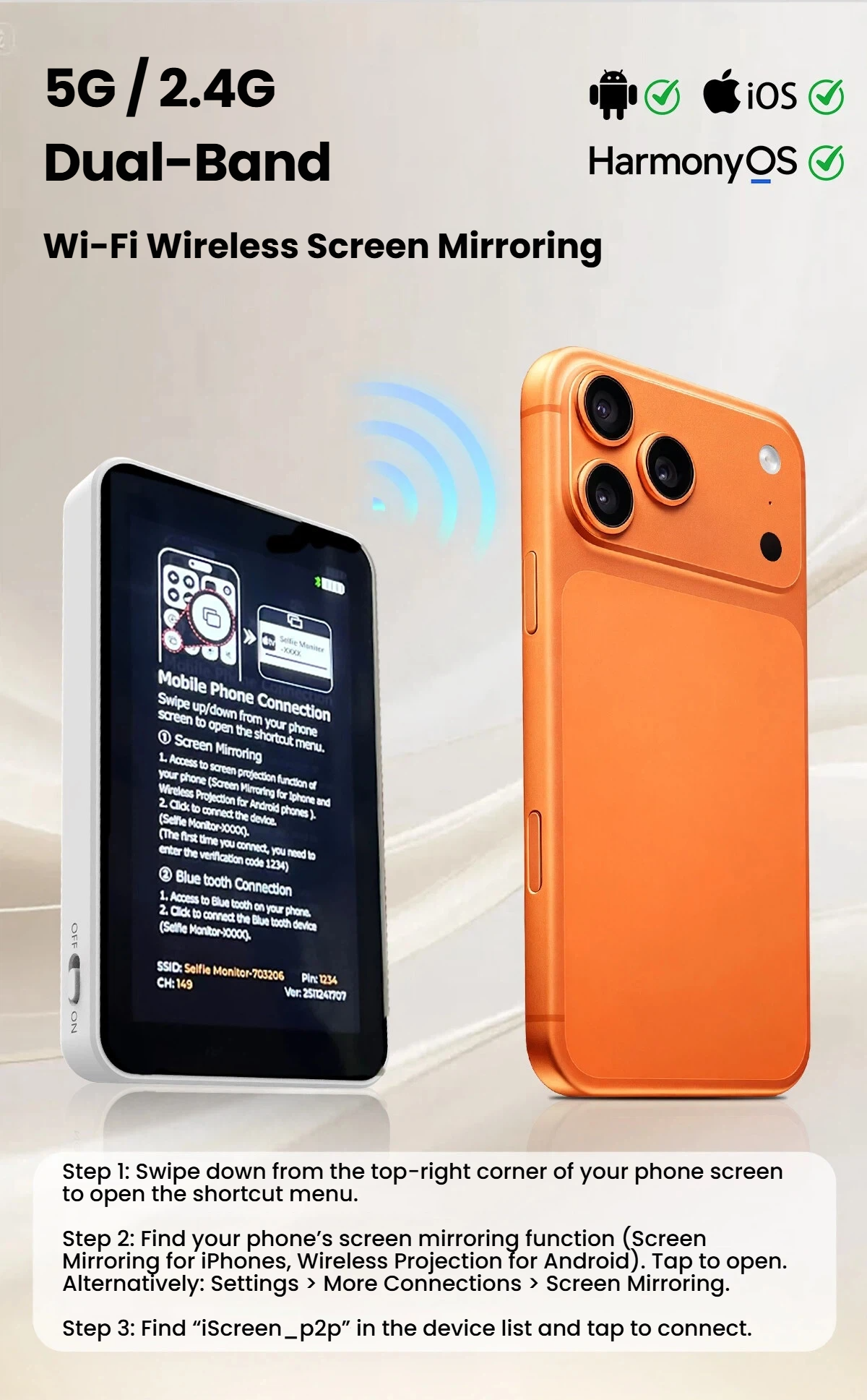 SnapShot Go – Wireless Rear-Camera Selfie Monitor with MagSafe & Dual-Band Streaming
